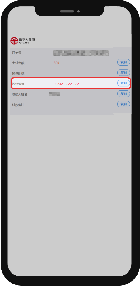 2、获取订单之后,复制钱包编号