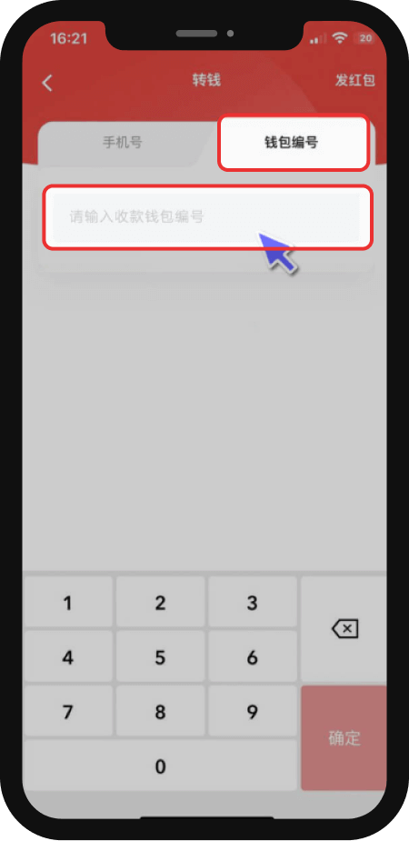 3、复制钱包编号,打开数字人民币APP,点击转钱